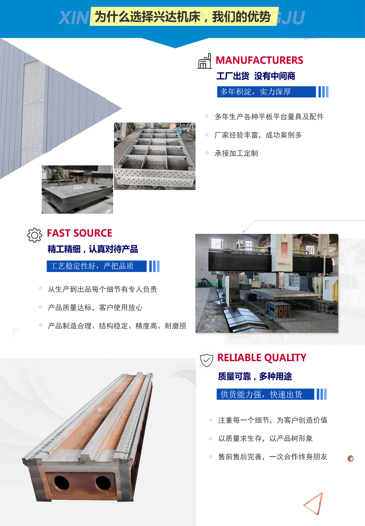 鑄鐵平臺壓砂的過程: 一步:我們要把一塊鑄鐵平臺放在工作臺上,用汽油把鑄鐵平臺擦干凈。 二步:在鑄鐵平臺上涂上少許硬脂,然后倒上用汽油泡好的M2.5的金剛砂。第三步:等汽油揮發(fā)后,滴入 10滴混合油,把下板涂勻,再在上板的四角及中心處涂些。